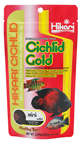 Färgförstärkande, daglig kost för alla typer av ciklider och större tropiska fiskar. Utmärkt även för Oscars! Hikari® Cichlid Gold® innehåller speciella färgförstärkare som är utformade för att framhäva den naturliga skönheten och formen. Hikari använder ingredienser av högsta kvalitet, formulerade i exakta mängder för att producera foder som kommer att ge dina fiskars lysande färger liv! Pelletsstorlek: 3,2-3,7mm