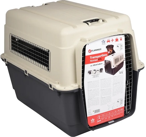 Flygburen Nomad är IATA-godkänd för transport. Levereras med foder- och vattenskål. Ventilationshål finns beläget på alla sidor. IATA godkända buren kan tas med på alla Europeiska flygbolag.