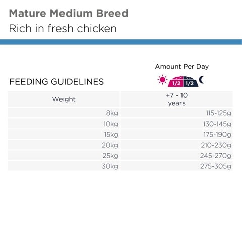 Eukanuba Thriving Mature torrfoder med färsk kyckling är särskilt utvecklat för medelstora hundar mellan 7–10 år. Det ger komplett och balanserad näring som stödjer viktkontroll, friska leder, starka ben, god matsmältning och en glänsande päls – samtidigt som DentaDefense-systemet främjar långsiktig tandhälsa.